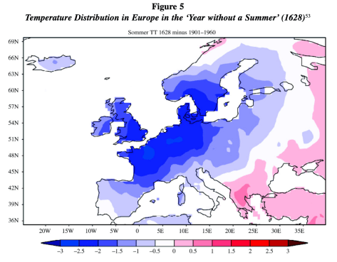According to the confessions, the Franconian witches had discovered how to make the frost. They prepared an unguent from children’s fat, flew through the air on the night of 27 May 1626 and dropped the poison on the crops and everything was frozen. The first rise in executions up to 1600 coincides with the massive increase in cold anomalies dropped back to their pre-crisis level which obviously coincides with a decrease in the number of executions. From 1618 to 1630 there is a second wave of extreme months which was followed by the most pronounced rise in executions. (Pfister 357)
