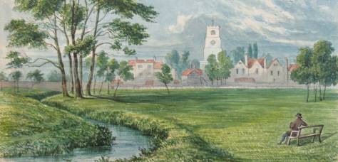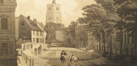 Engravings and paintings of St Augustine’s Church at the top end of Mare Street show the atmosphere to be bucolic. The river, with a footbridge, crossed in front of the church. The Hackney Brook does not flow to the Thames like most of its subterranean brethren; instead it flows into the River Lea, right alongside the point where the romantically named ‘Northern Sewage Outfall’ is pumped through elevated pipes.