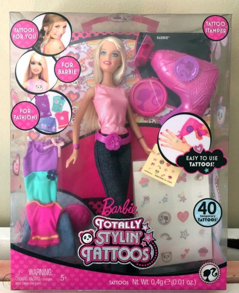But 2011’s Tokidoki Barbie (and her delightfully bonkers cactus / dog pet Basdardino) was not the first Barbie to sport tattoos. In 2009, Mattel unveiled ‘Totally Stylin’ Barbie’, but her tattoos were stick-on and removable.
