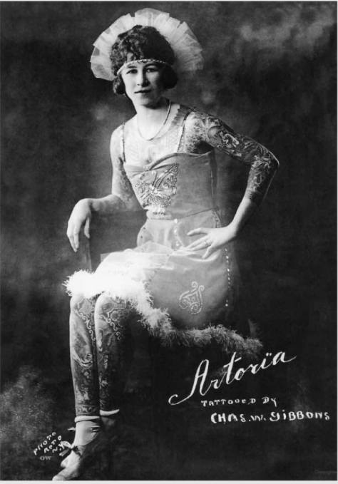 Everyone knows: tattoos are for convicts, prostitutes, and drunken sailors. Any woman who dares get one is destined to live fast and die young. Harlots of the saucest degree. Her only job prospects are the circus sideshow or a biker’s Old Lady.