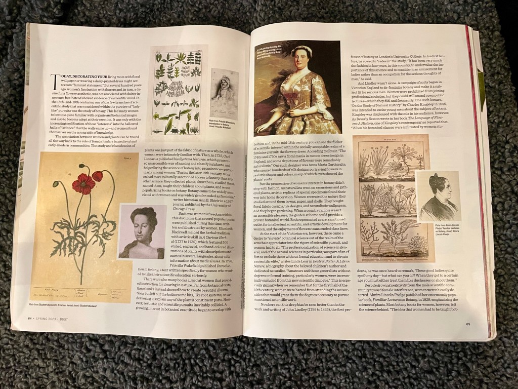 ‘Awesome Blossoms: Are Flowers Feminist? The surprisingly radical history of women and botany’, BUST Magazine, Spring 2023